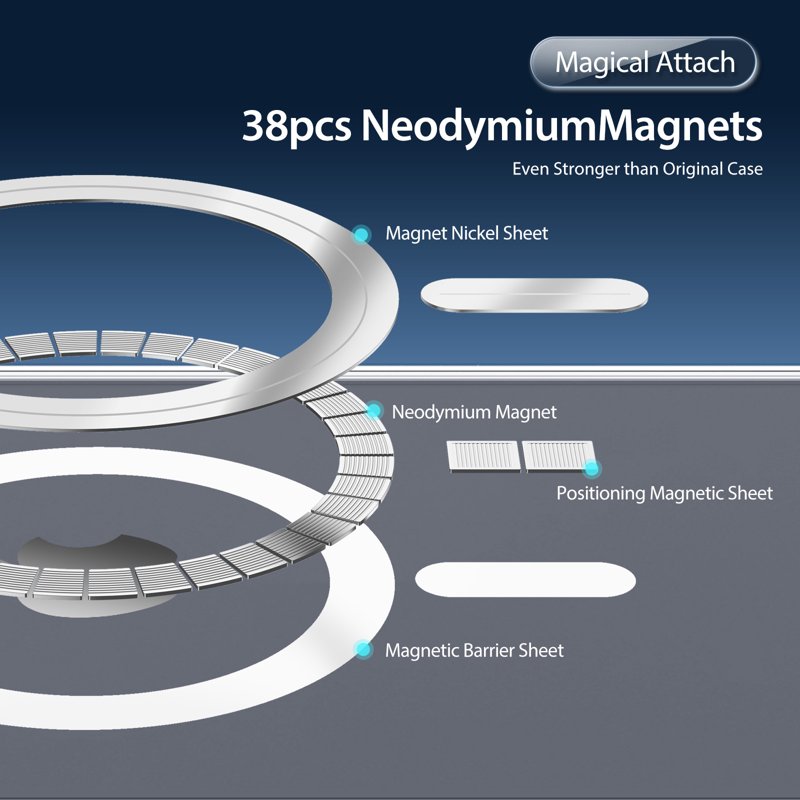 • MagSafe-kompatibel - Inbyggd magnetring med 38 Neodymium-magneter för starkare magnetisk anslutning vid MagSafe-laddning.