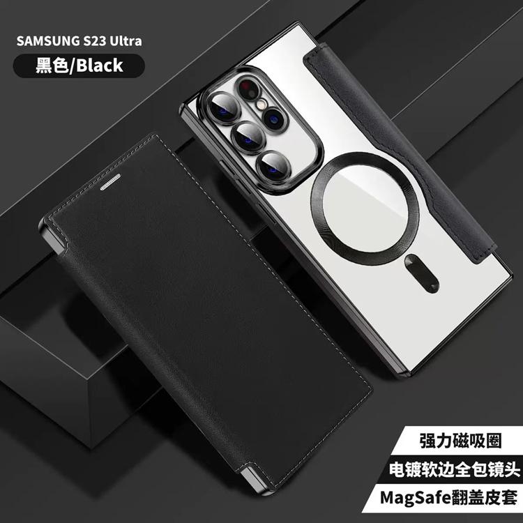 Detta stilrena flipfodral är utformat för dig som vill kombinera klassisk design med modern teknik. Den inbyggda magneten gör fodralet fullt kompatibelt med MagSafe-laddning och tillbehör, vilket ger en säker och stabil anslutning varje gång – utan att du behöver ta av fodralet. Det är tillverkat av exklusiva material som PU-läder, PET, PC och en mjuk TPU-ram för ett slimmat, hållbart skydd runt hela din mobil.