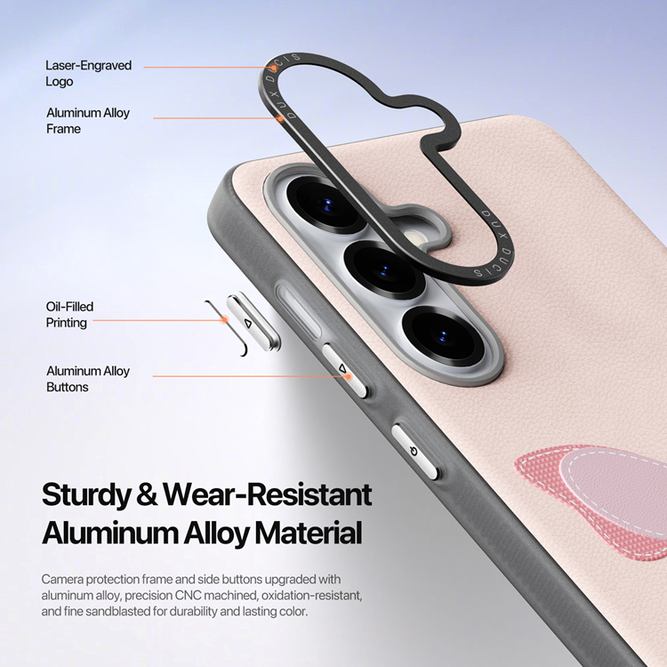 Noggrant utvalda skyddsmaterial – PU-läder, värmeavledande PC-bakpanel och TPU-ram med stötdämpande air-cushion-struktur.