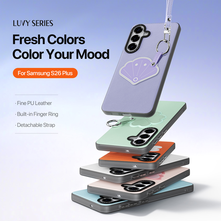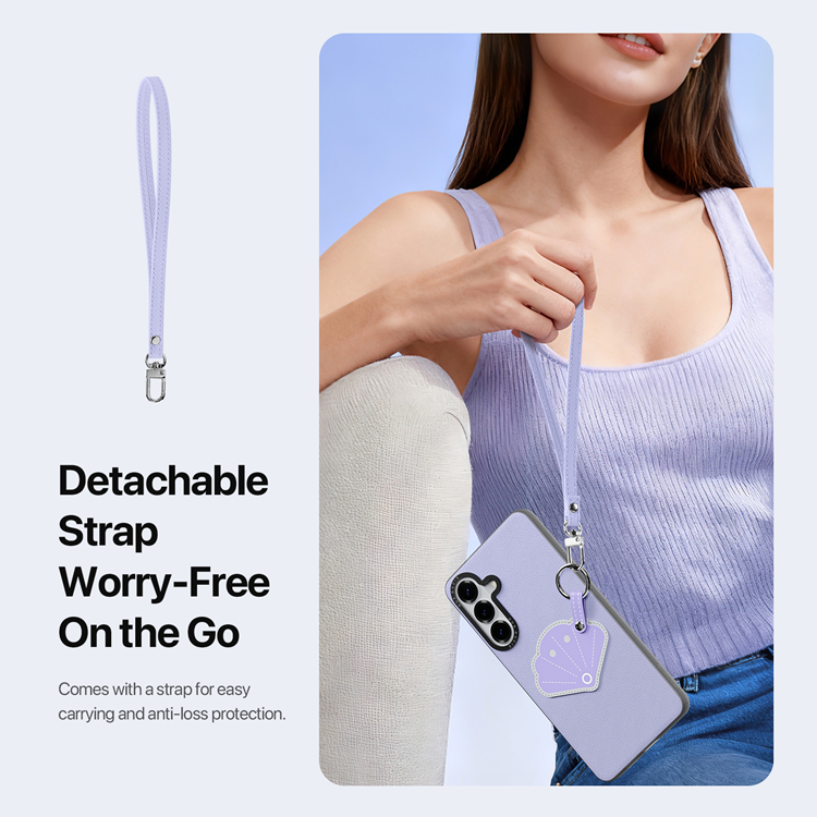 DUX DUCIS Galaxy S26 Plus Mobilskal med Fingerring / Handledsrem Luvy Series PU-läder + TPU + PC - Lilac Purple & Shell