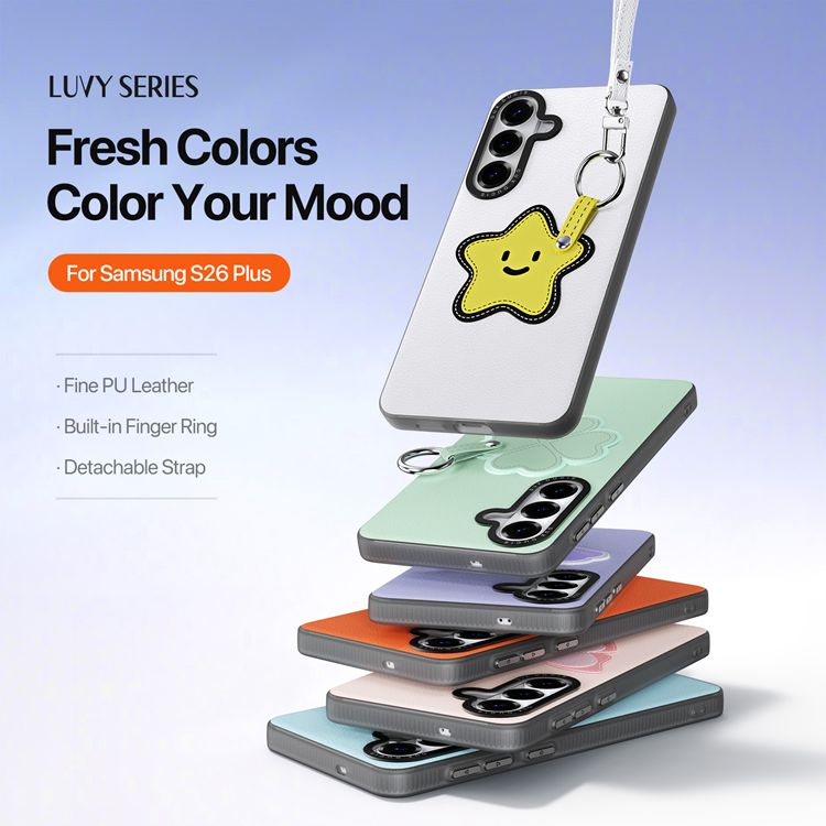 DUX DUCIS Galaxy S26 Plus Mobilskal med Fingerring / Handledsrem Luvy Series PU-läder + TPU + PC - Snow White & Star