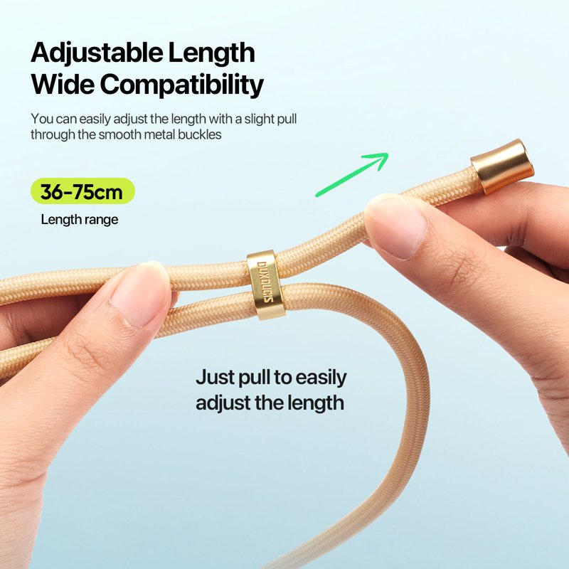 DUX DUCIS Garden Series Phone Lanyard är den perfekta lösningen för att hålla din telefon säker och lättillgänglig. Med en justerbar längd mellan 36-75 cm kan du använda den som axelrem, tvärrem eller nackrem. Den stiliga Glaze Yellow-färgen ger en modern touch till din vardag.