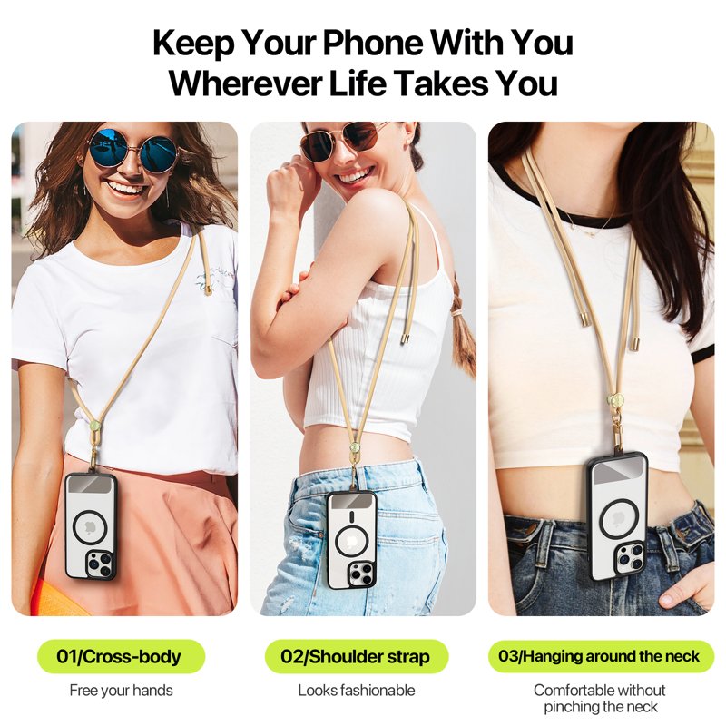 • Justerbar längd för att passa dina behov som axelrem, tvärrem eller nackrem