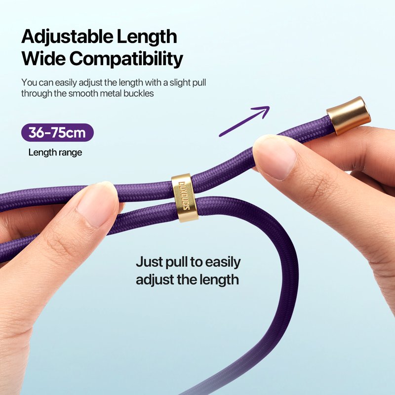 DUX DUCIS Garden Series Telefon Lanyard är den perfekta lösningen för att hålla din telefon säker och lättillgänglig. Med en justerbar längd på 36-75 cm kan den användas som nackrem, axelrem eller crossbody-rem. Den är både stilren och funktionell, vilket gör den idealisk för vardagligt bruk.