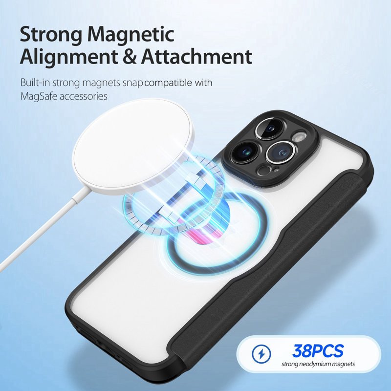 - MagSafe-kompatibilitet: Inbyggda magneter säkerställer en stabil anslutning till MagSafe-laddare och tillbehör.