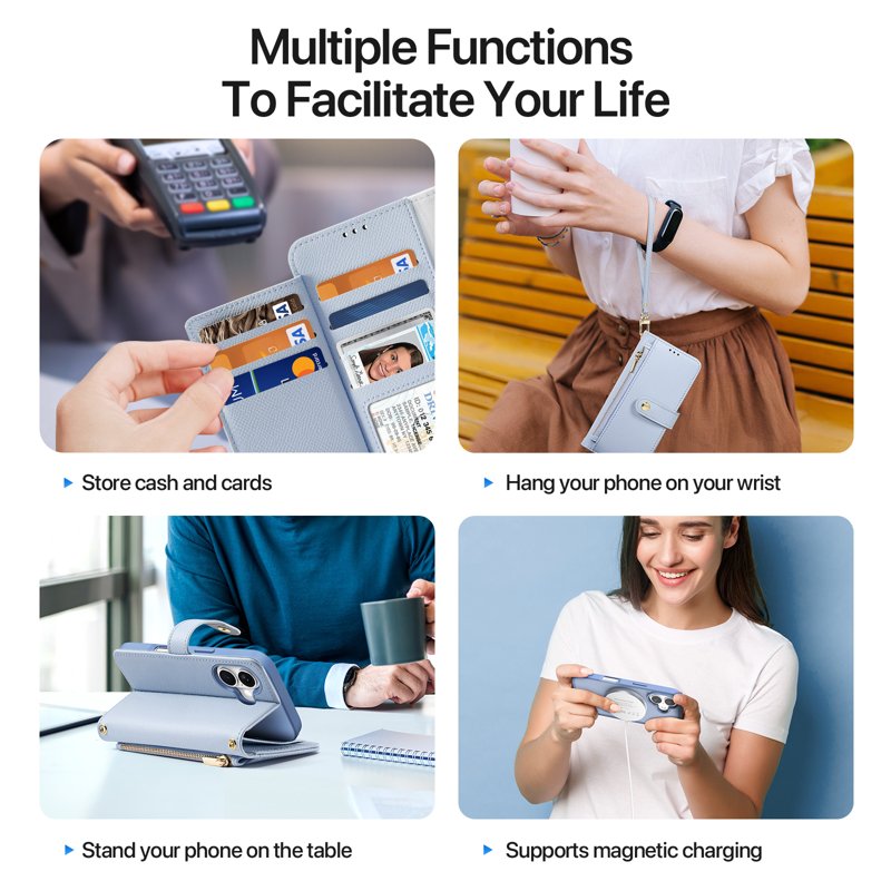 - Flera förvaringsalternativ - Med en zip-ficka och flera kortfack för kontanter, kort och mynt.