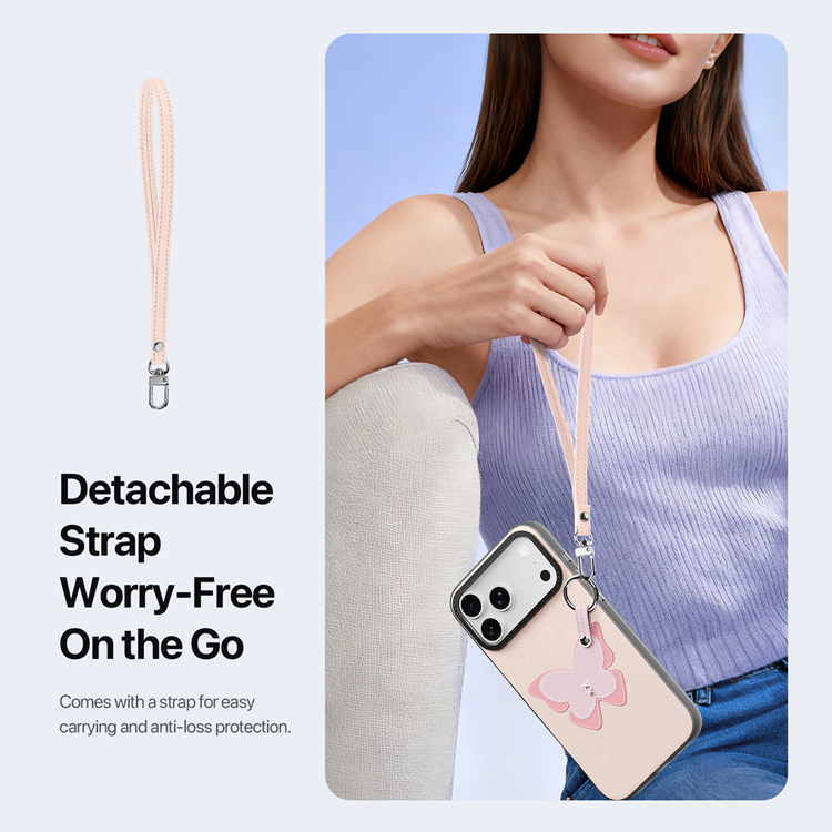 DUX DUCIS iPhone 17 Pro Max Mobilskal med Fingerring/Rem Luvy Series PU Läder + PC - Light Pink & Butterfly