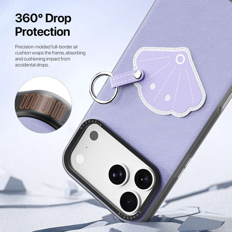 DUX DUCIS iPhone 17 Pro Max Mobilskal med Fingerring/Rem Luvy Series PU Läder + PC - Lilac Purple & Shell