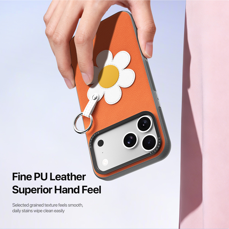 DUX DUCIS iPhone 17 Pro Max Mobilskal med Fingerring/Rem Luvy Series PU Läder + PC - Warm Orange & Daisy