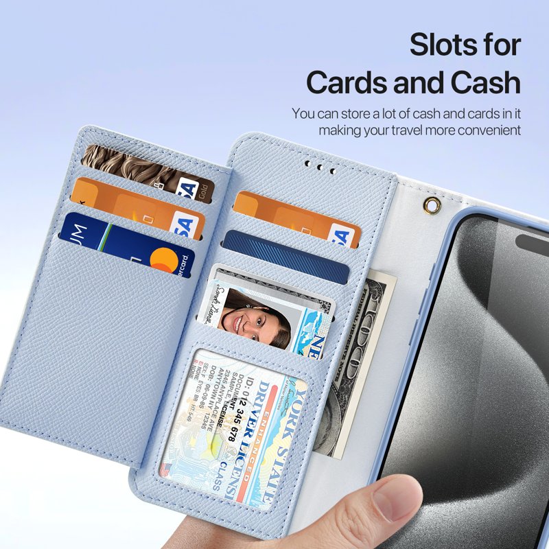 • Flera förvaringsalternativ: Fodralet har en dragkedjeficka och flera kortfack för kontanter och kort.