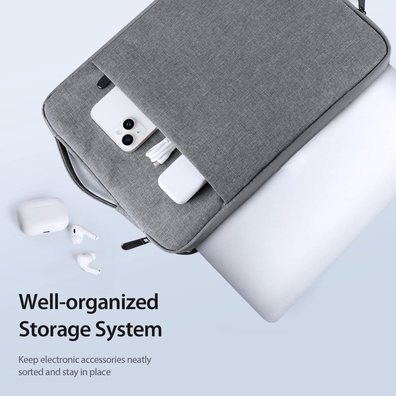- Framficka för förvaring av pennor, kablar, mus, hörlurar och mobiltelefoner