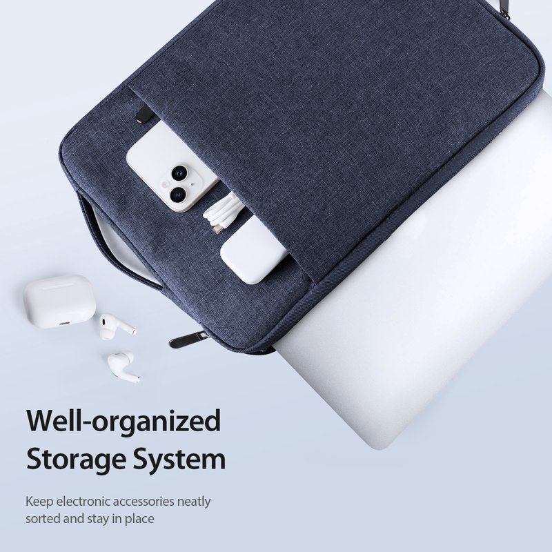 - Framficka för förvaring av pennor, kablar, mus, hörlurar och mobiltelefoner