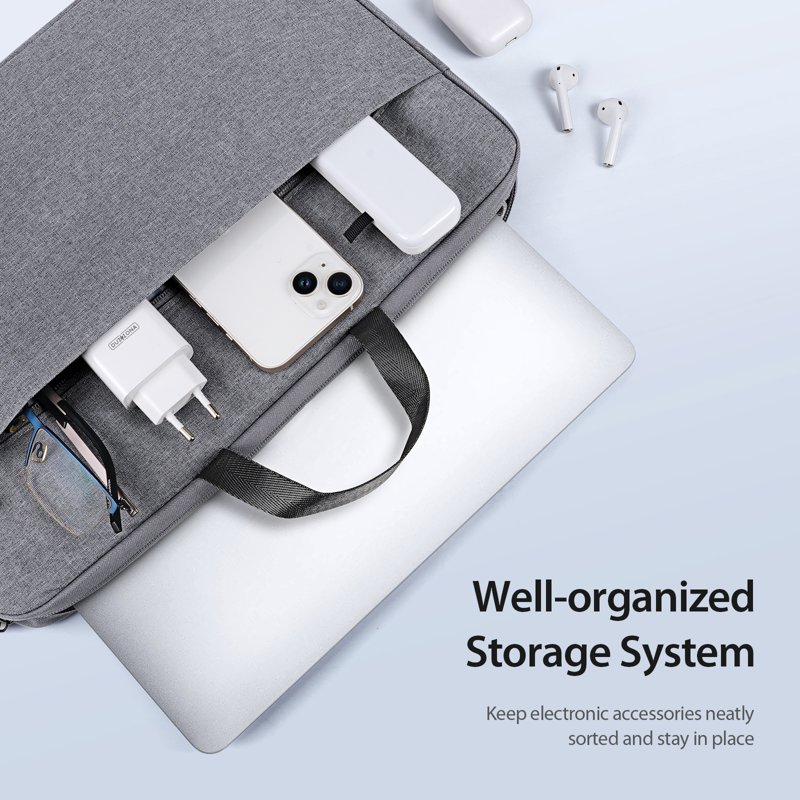 - Framficka för förvaring av tillbehör som pennor, kablar och mobiltelefoner