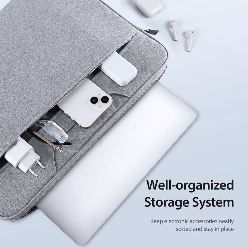 - Framficka för förvaring av pennor, kablar, mus, hörlurar och mobiltelefoner