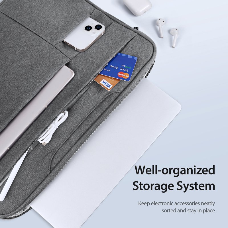• Flera fickor: Flera fickor för enkel förvaring av laptop och elektroniska tillbehör.
