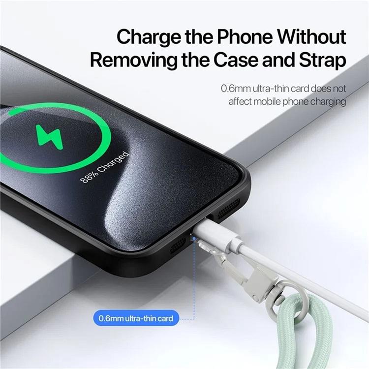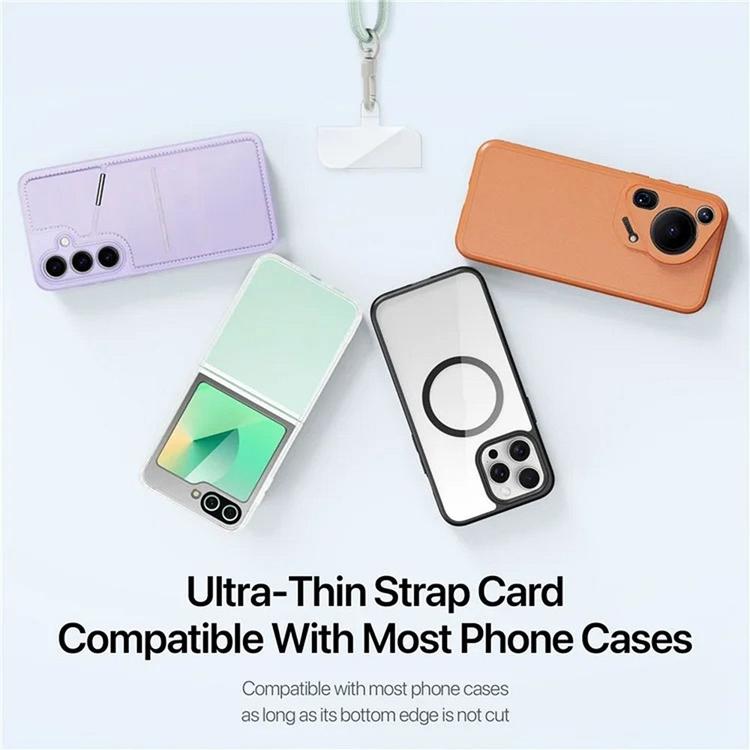Tillverkad av slitstarka material som zinklegering, TPU och polyester, är denna mobilrem både tålig och bekväm. De två aluminiumspännena ger ett stadigt grepp och säkerställer att din mobil hålls på plats utan risk för fall. Den minimalistiska och stilrena designen gör den till ett snyggt tillbehör som passar alla outfits, samtidigt som den erbjuder en praktisk och säker lösning för att bära din mobil.