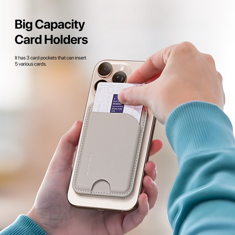 - Stort kortfack med plats för upp till 5 kort, inklusive en anti-tjuv-funktion för extra säkerhet.