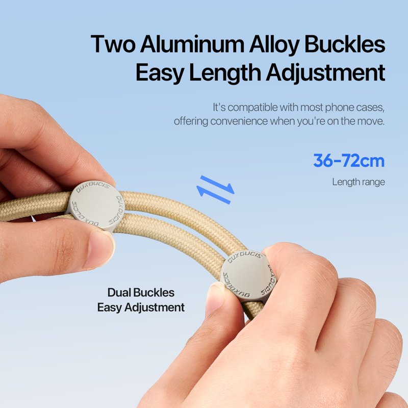 DUX DUCIS PLAZ Phone Lanyard i Glaze Yellow är den perfekta lösningen för att hålla din telefon säker och lättillgänglig. Med en längd på 146 cm och justerbar design kan du enkelt anpassa den efter dina behov. Denna lanyard kombinerar stil och funktionalitet, vilket gör den idealisk för både vardag och speciella tillfällen.