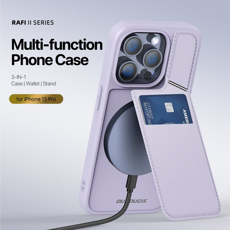 DUX DUCIS Rafi II iPhone 13 Pro mobilskal med kortplats Konstläder - Lila