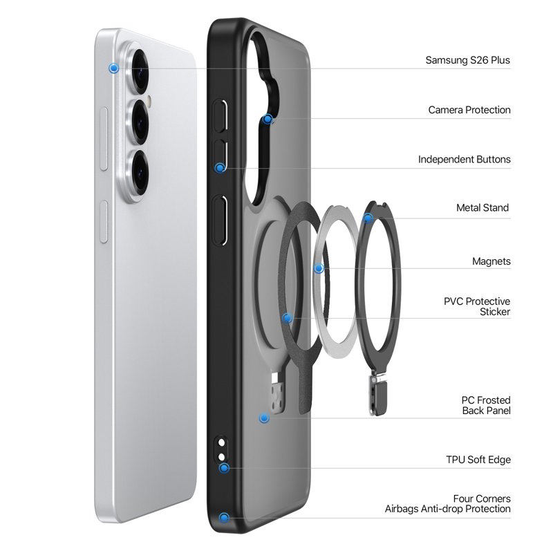 - Stark magnetisk fäste: Inbyggd magnetring möjliggör enkel anslutning till magnetiska laddare och bilhållare (ingår ej).