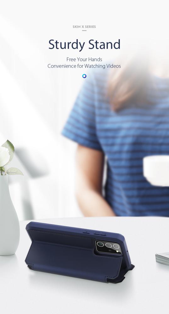 Detta DUX DUCIS fodral har enkel affärsstil och smal kroppskonstruktion. Väl valt glansigt PU-läder från utsidan till insidan är slät som hud och smutsbeständig. Hopfällbart stativ stöder din telefon i en bekväm visningsvinkel, vilket definitivt gör videotittning roligare. Håll ditt huvudkort nära till hands för att svepa och spendera på språng. Inbyggd magnet för automatisk stängning, säker och bekväm.
