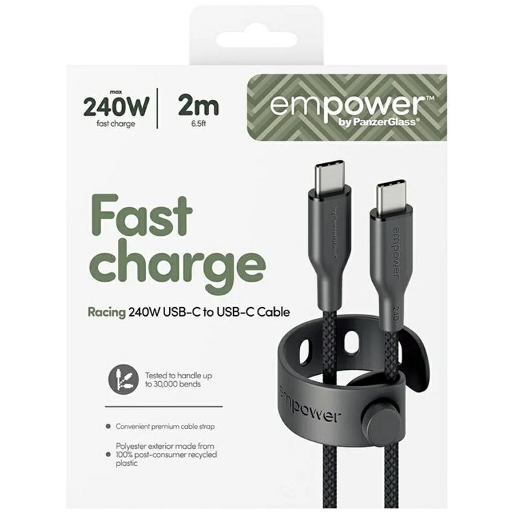Empower by PanzerGlass USB-C till USB-C 240W Kabel 2m Racing - Svart