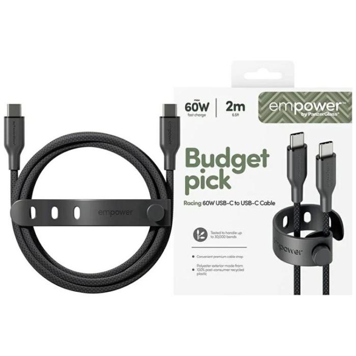 Empower by PanzerGlass USB-C till USB-C 60W Kabel 2m Racing - Svart