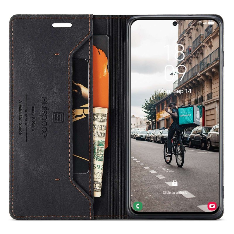 AUTSPACE A01 Fodral för Samsung Galaxy S21 FE 5G - PU Läder - Svart
