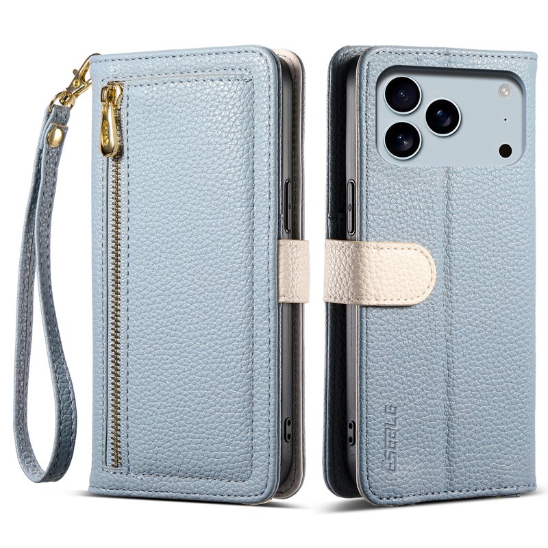 ESEBLE E11 för iPhone 17 Pro är ett elegant fodral i äkta läder med en stilren sky blue-färg. Det erbjuder både skydd och funktionalitet. Med smarta fack för kort och en praktisk ställfunktion är detta fodral perfekt för den moderna användaren.
