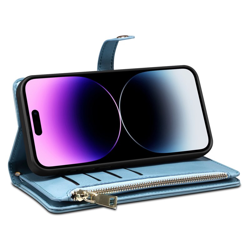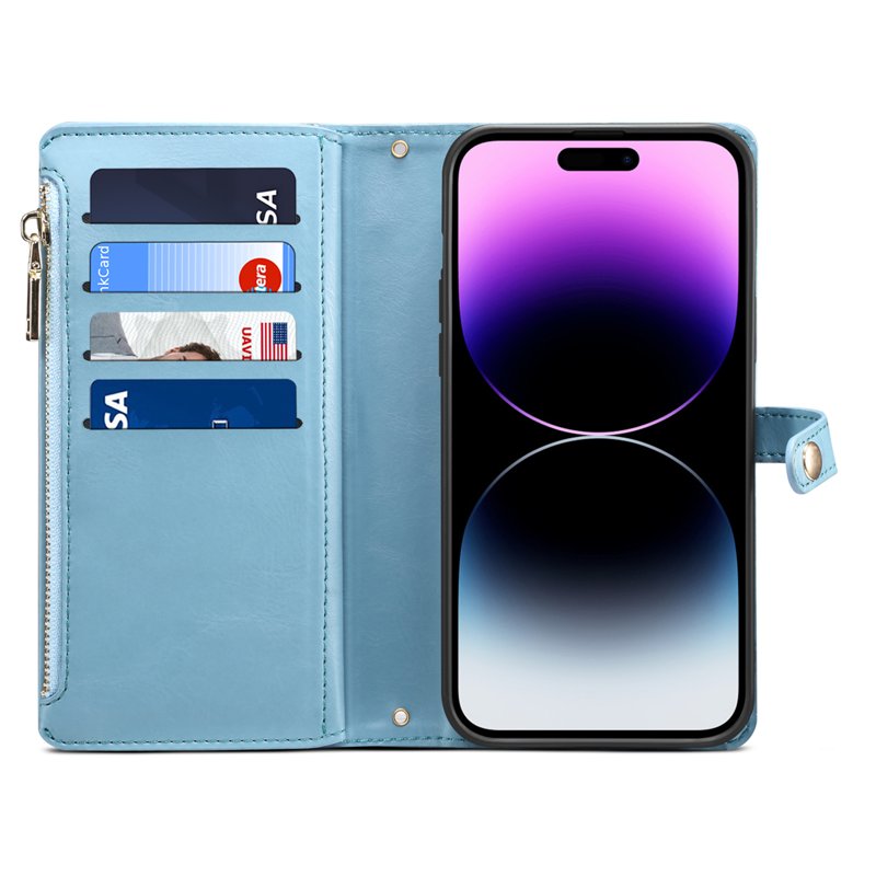 - Multifunktionell plånboksdesign: Inkluderar 8 kortfack, ett sedelfack och en dragkedjeficka för kontanter och mynt.