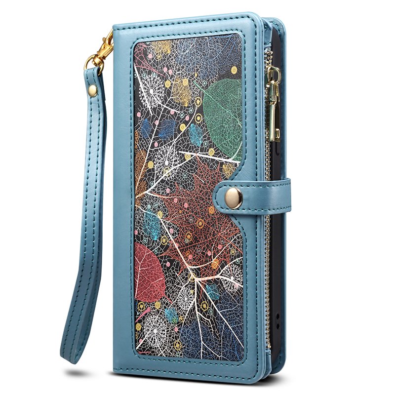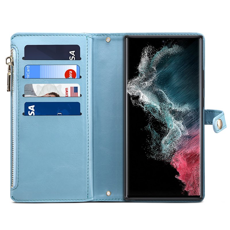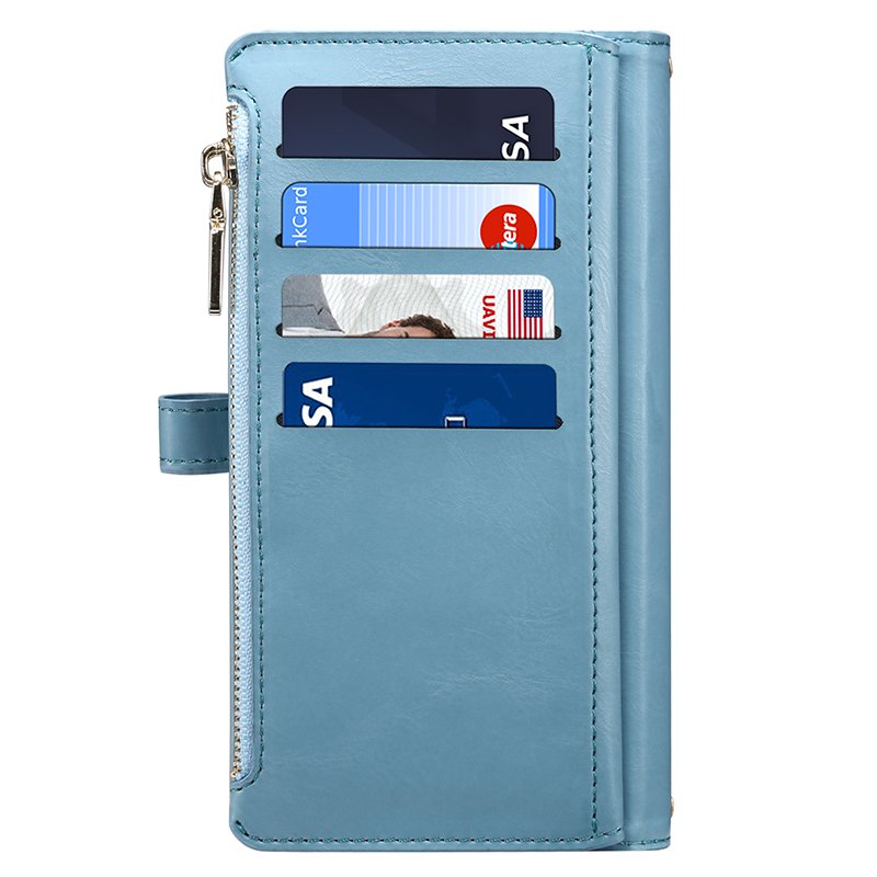 - Multifunktionell plånboksdesign Inkluderar 8 kortfack, ett sedelfack och en dragkedjeficka för kontanter och mynt
