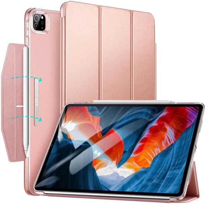 Praktiskt, skyddande ESR Yippee iPad Pro 12.9 2021 fodral med ett stativ.