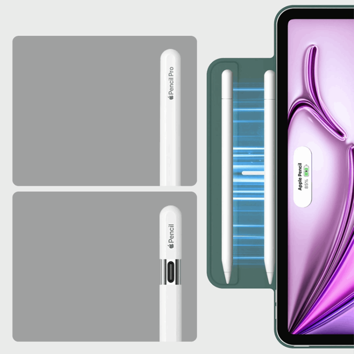 Med inbyggda magneter fäster skalet smidigt på din iPad och möjliggör snabb och enkel montering. Tack vare den automatiska väcknings- och vilofunktionen aktiveras eller stängs skärmen så fort du öppnar eller stänger fodralet – vilket sparar batteri och gör användningen ännu smidigare. Dessutom kan skalet vikas om till en praktisk justerbar ställning, perfekt för att titta på filmer, läsa eller jobba bekvämt.