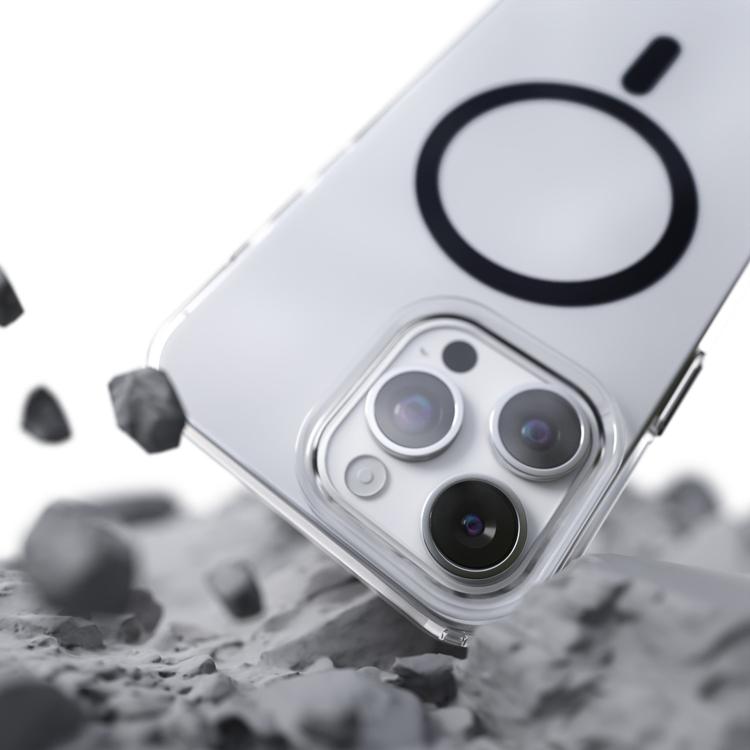 Med en tunn konstruktion på endast 2.5 mm bibehålls mobilens smidiga känsla, samtidigt som de upphöjda kanterna skyddar kameran. De stötsäkra hörnen ger extra skydd vid fall, och den inbyggda 2800 Gs-magneten gör skalet fullt kompatibelt med MagSafe-laddning och magnetiska bilhållare utan att påverka funktionaliteten.