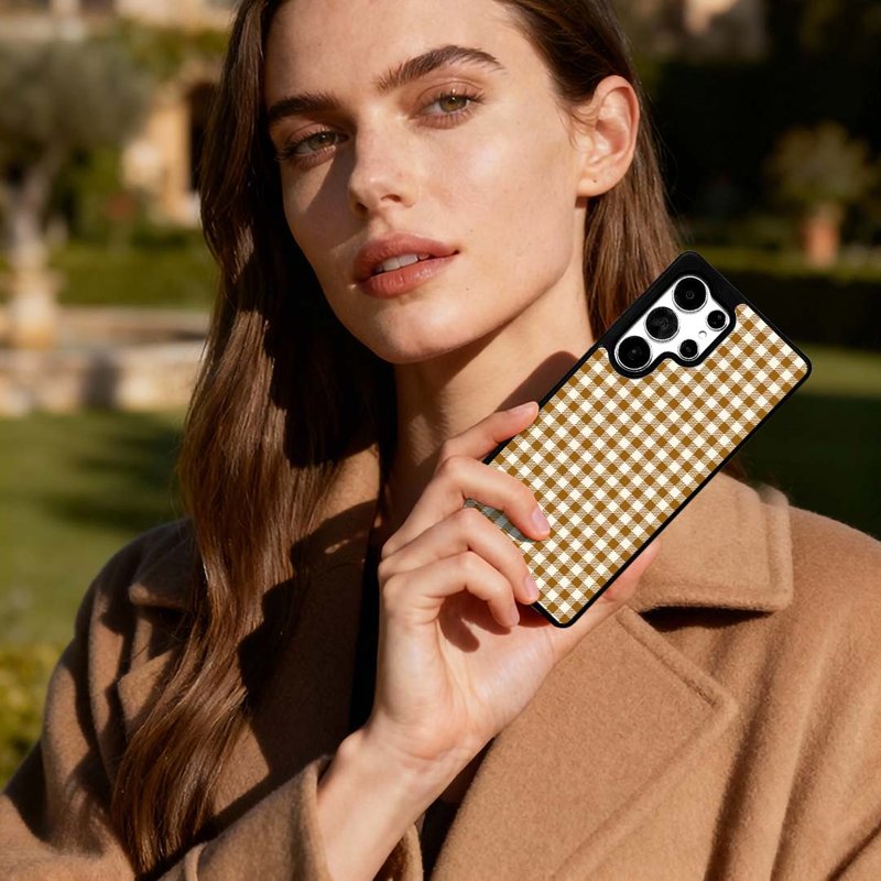 - Stilren mönsterdesign - Bakpanelen har ett unikt rutmönster med svarta kanter för en chic look.