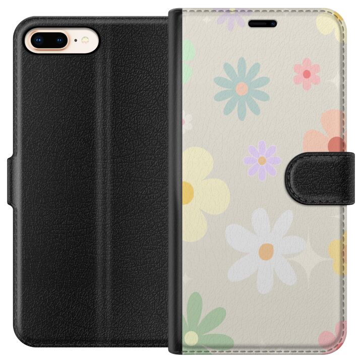 Plånboksfodral för iPhone 7 Plus med fejdande blommor -design. Fodralet kombinerar stil och funktion – ett slitstarkt mobilskal som skyddar mot repor och stötar samt praktiska kortfack på insidan.