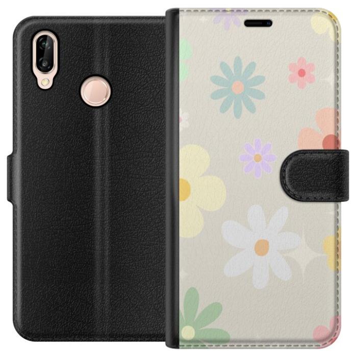 Plånboksfodral för P20 lite med fejdande blommor -design. Fodralet kombinerar stil och funktion – ett slitstarkt mobilskal som skyddar mot repor och stötar samt praktiska kortfack på insidan.
