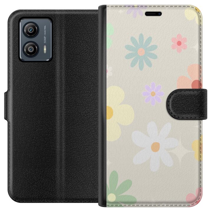 Plånboksfodral för Moto G53 med fejdande blommor -design. Fodralet kombinerar stil och funktion – ett slitstarkt mobilskal som skyddar mot repor och stötar samt praktiska kortfack på insidan.