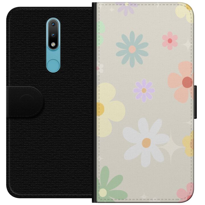 Plånboksfodral för 2.4 med fejdande blommor -design. Fodralet kombinerar stil och funktion – ett slitstarkt mobilskal som skyddar mot repor och stötar samt praktiska kortfack på insidan.