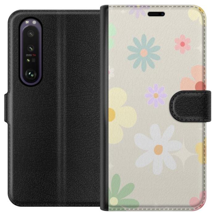 Plånboksfodral för Xperia 1 III med fejdande blommor -design. Fodralet kombinerar stil och funktion – ett slitstarkt mobilskal som skyddar mot repor och stötar samt praktiska kortfack på insidan.