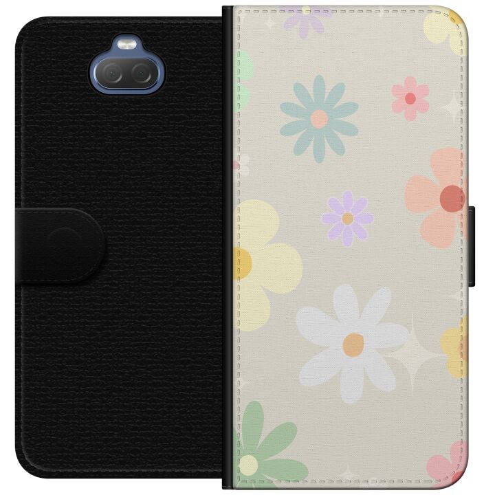 Plånboksfodral för Xperia 10 Plus med fejdande blommor -design. Fodralet kombinerar stil och funktion – ett slitstarkt mobilskal som skyddar mot repor och stötar samt praktiska kortfack på insidan.