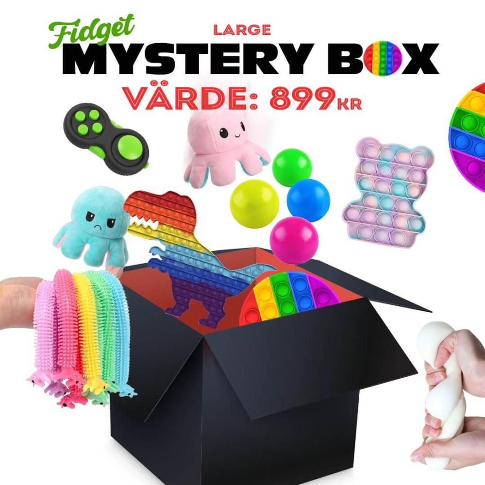 Här kommer vår fidget mystery box fullproppad med fidgets toys. Du får minst 35 st olika fidget toys. Vi garanterar att den innehåller unika fidget toys.