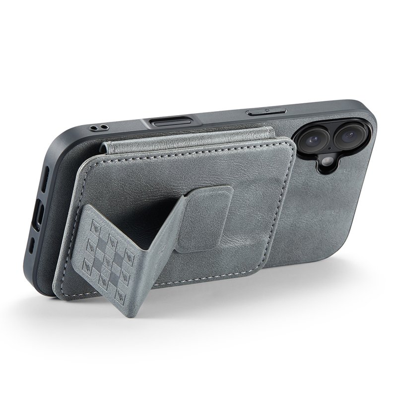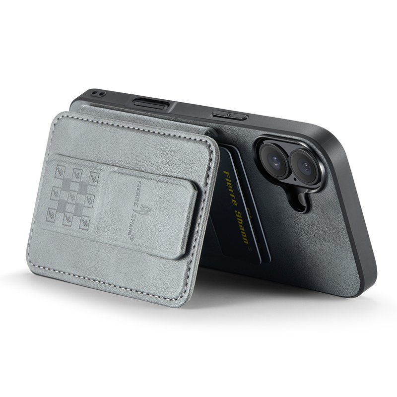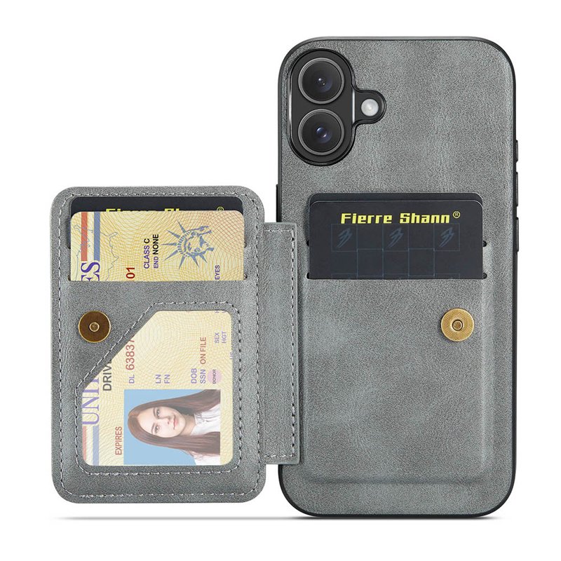 FIERRE SHANN 024 iPhone 16 Fodral Card Holder - Äkta läder - Grå