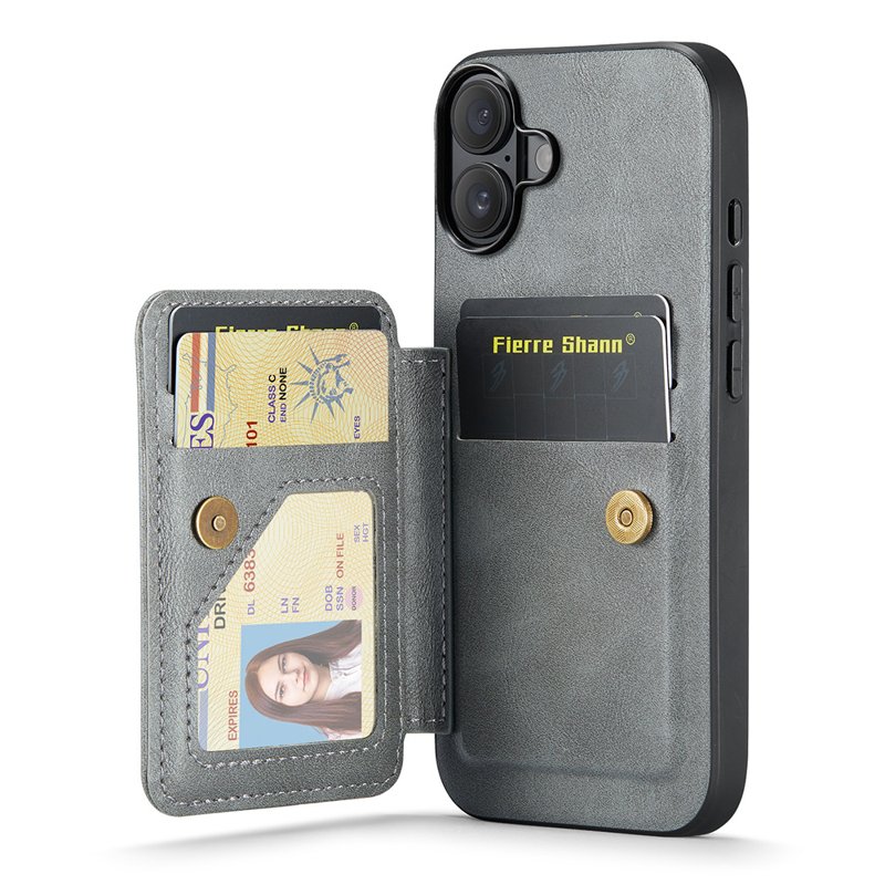 Handla denna produkt FIERRE SHANN 024 iPhone 16 Fodral Card Holder - Äkta läder - Grå