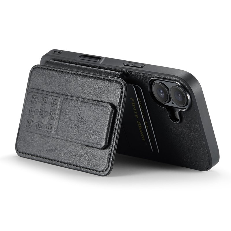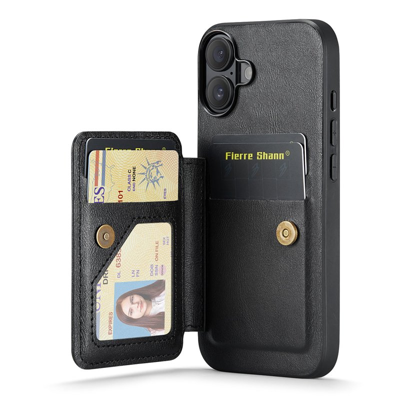 FIERRE SHANN 024 iPhone 16 Fodral Card Holder - Äkta läder - Svart