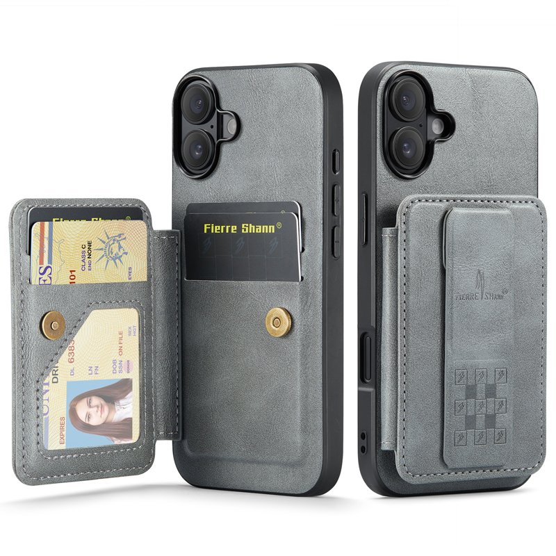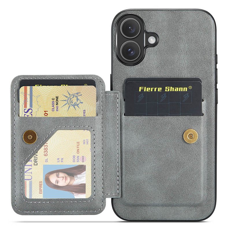 FIERRE SHANN 024 iPhone 16 Plus Fodral Äkta läder - Grå