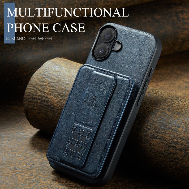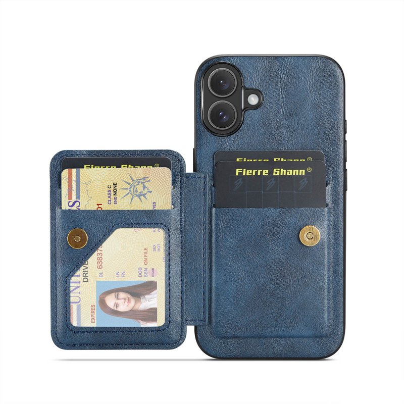 FIERRE SHANN 024 iPhone 17 Fodral Card Holder Äkta läder - Blå