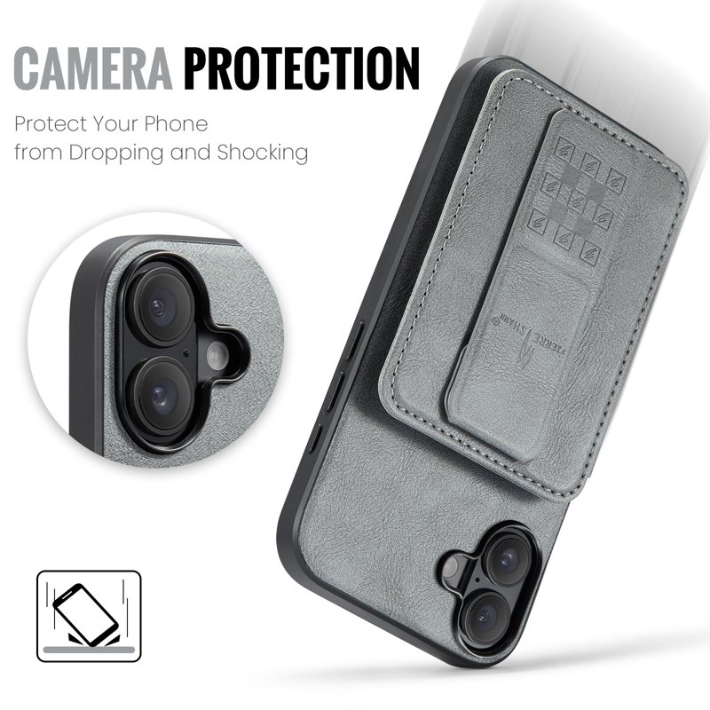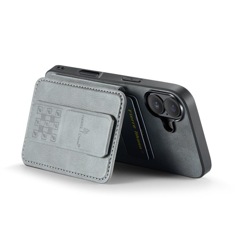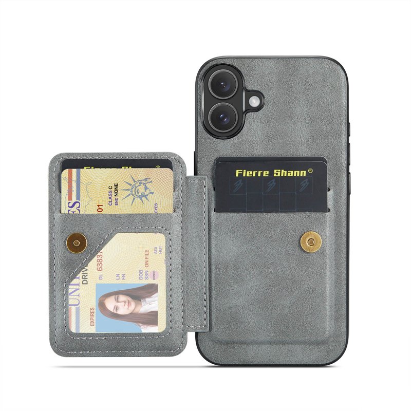 FIERRE SHANN 024 iPhone 17 Fodral Card Holder Äkta läder - Grå