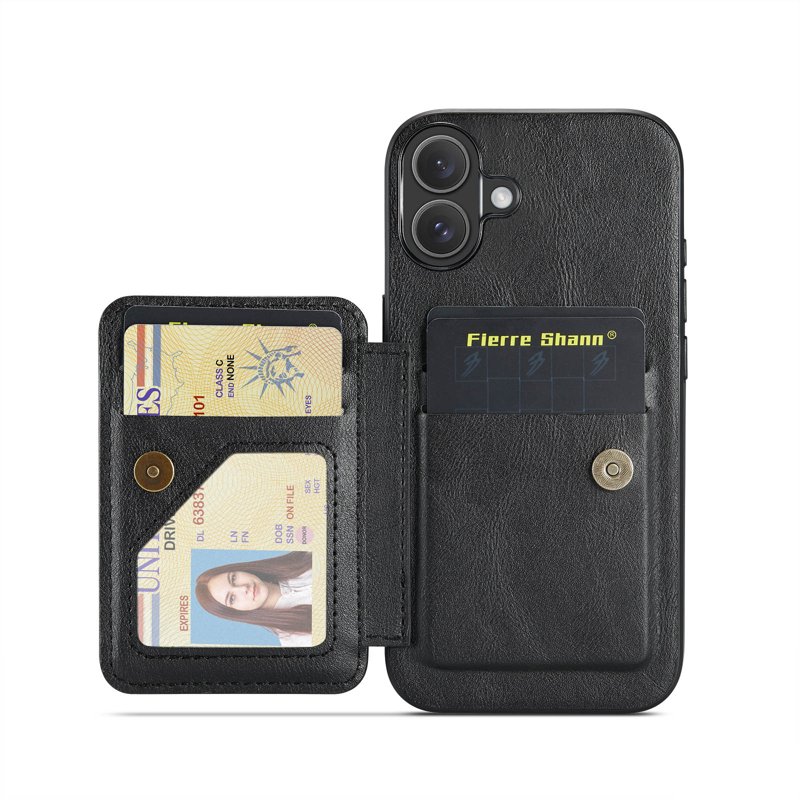 FIERRE SHANN 024 iPhone 17 Fodral Card Holder - Äkta läder - Svart