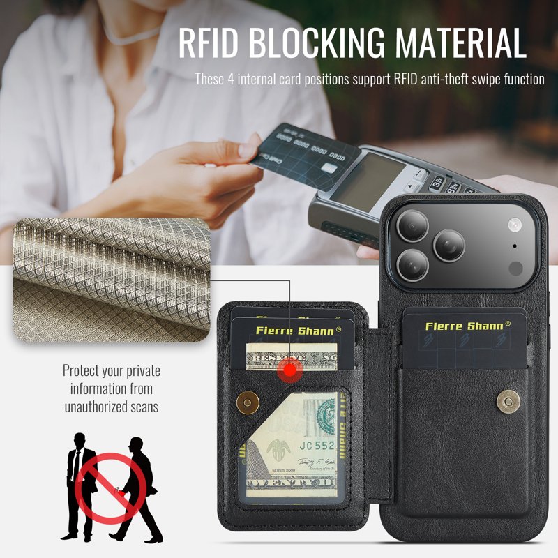 FIERRE SHANN 024 fodralet för iPhone 17 Pro kombinerar stil och funktionalitet. Tillverkat av äkta läder ger det ett elegant utseende samtidigt som det erbjuder överlägset skydd. Med smarta funktioner som RFID-blockering och en inbyggd kickstand är detta fodral perfekt för den moderna användaren.